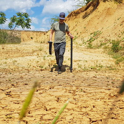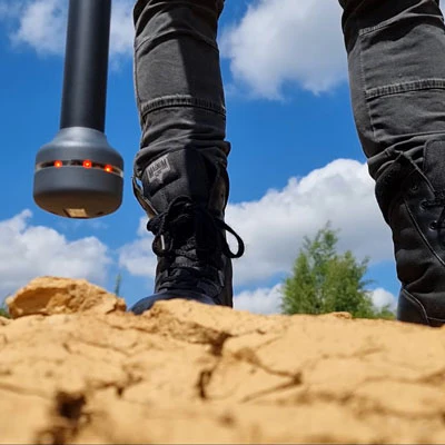 地表付近の金属物が少ないほど、3D地上スキャンの結果は良くなります。磁力計でスキャン範囲をクリアすることで、地下深くにあるより大きな金属ターゲットも発見できます。Visualizer 3D Studioで3D地上スキャン画像を分析し、ピンポインターモードを使用して検出された物体の位置をより正確に特定できます。