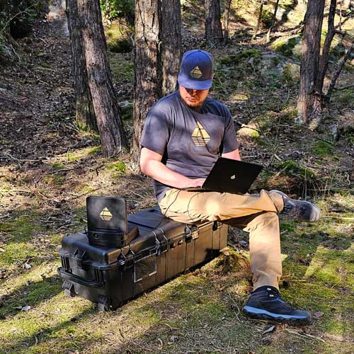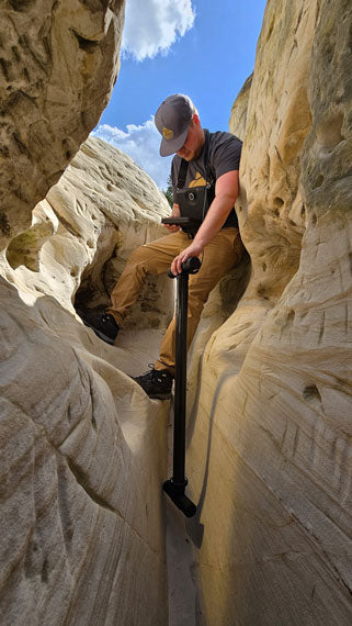 PentaSenseロッドを使用することで、傾斜地でもプローブを人間工学的にバランスよく前方に保持できます。プローブと探知者との距離が離れているため、測定に影響を与えることなく快適に歩くことができ、より鮮明で正確なスキャン結果が得られます。